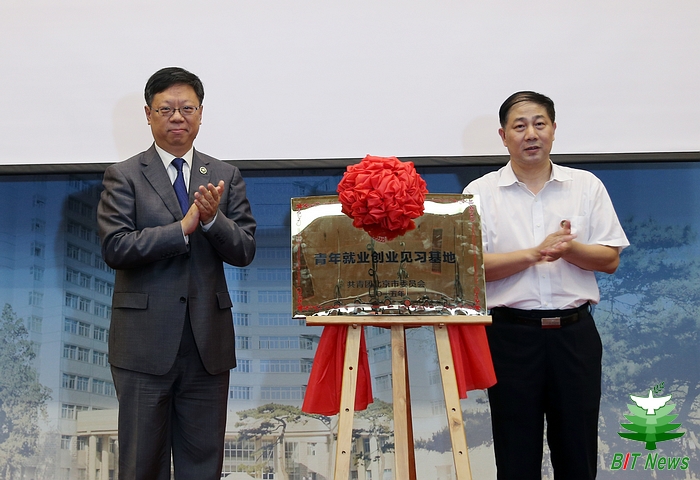 。。論壇中,副校長項昌樂與楊海濱共同為團市委“青年就業創業見習基地”揭牌。同時,現場展示了北京市委向學校頒發的“中國人民抗日戰爭暨世界反法西斯戰爭勝利70周年紀念活動北京市服務保障工作先進集體”獎牌,全國僅有我校和清華大學獲此殊榮。