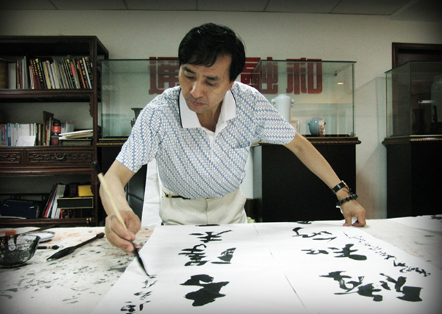 談到書法藝術的生命力所在,劉少英臉上不禁洋溢起燦爛的笑容,說道:中國漢字從出現那天開始到現在已有三千多年,書法也因此存在三千多年了,為了追求美感,從象形文字開始,延伸出了兩支,一支是中國畫,另一支就是我們現在的中國漢字和漢字書法藝術。因為漢字出現以后,由于實際需要被刻錄在龜甲、牛骨上的甲骨文得以流傳。而歷朝歷代的書法家那么多,書法作品汗牛充棟,而能存在至今的又有多少呢?其實也并不是所有人可能成為名垂千古的書法家,王羲之、王獻之、蘇東坡等大家通曉中國傳統文化,精讀四書五經,在傳承先人的優秀文化的同時,發展創新詩詞書畫藝術,形成具有深刻文化內涵和思想主張的藝術流派。后人又在他們的基礎上,不斷吐故納新,讓書法藝術得以長久不衰,始終保持旺盛的藝術生命力,中華書法藝術文化因此源遠流長至今。如右軍之前無王體,魯公之前無顏體。他們都有突出的型體創造性和強烈的風格個性。正是這些書法革新家的偉大創造,給書法增添了無窮的生命力并使之發出燦爛的光芒。