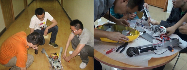 在兩個基礎研究項目——“蛙板機器人”和“智能車”的研究過程中,充滿了令人難忘的感人瞬間,每當隊員們回憶起的時候,昨天一起奮斗的場景仿佛都歷歷在目。