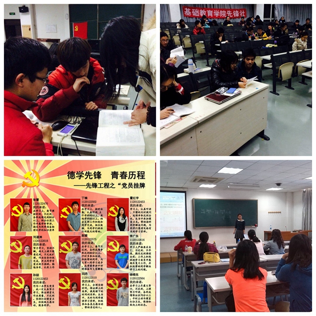 基礎(chǔ)教育學(xué)院黨委經(jīng)過多年的工作時間,形成了特色黨建工作的 “八個一”工程,即每學(xué)期“精讀一本經(jīng)典著作”、“撰寫一篇讀書心得”、“參加一次黨課學(xué)習(xí)”、“進(jìn)行一次主題討論”、“參與一個學(xué)術(shù)小組”、“參加一次實踐活動”、“撰寫一篇實踐報告”、“幫扶一位落后同學(xué)”。這些貼近大學(xué)生群體成長發(fā)展實際的舉措,將理論學(xué)習(xí)和實踐活動相結(jié)合,從理論學(xué)習(xí)、服務(wù)意識、先鋒作用、實踐能力、學(xué)術(shù)水平等多方面推動學(xué)生黨員素質(zhì)綜合提升,取得實效,并獲得“北京高校學(xué)習(xí)型黨組織建設(shè)品牌活動”榮譽。